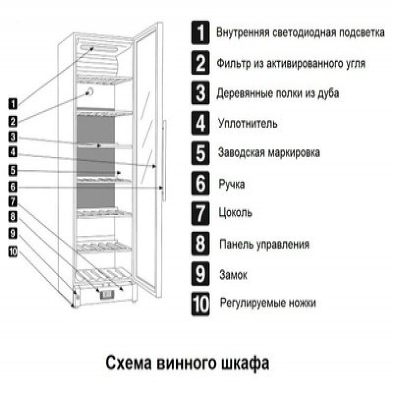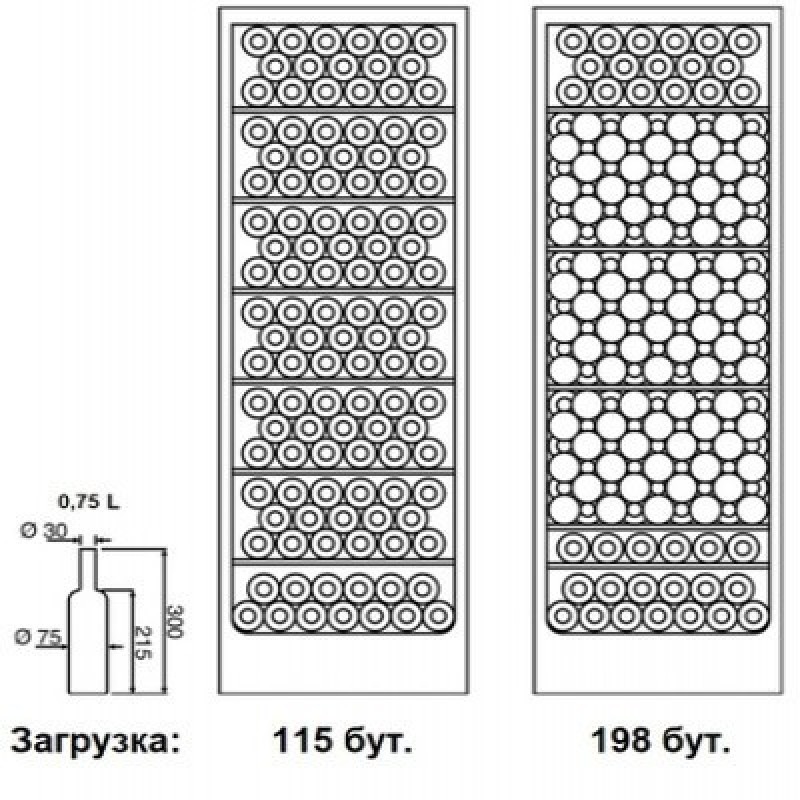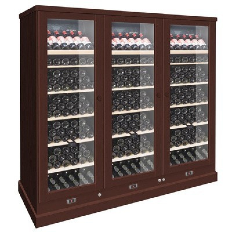 Отделка - натуральный дуб, цвет орех.2 режима использования настроек температуры в каждой камере:- мультитемпературный режим: в нижней части камеры задается низкая температура (например, +5°C), в верхней части камеры задается высокая температура (например, +18°C); таким образом, в нижней части храним игристые, в средней части - белые, а в верхней части - красные вина; данный способ подходит для подачи вина- однозонный режим: в нижней и верхней части камеры задаем один температурный режим (как правило, +12°C); данный режим идеален для долгосрочного хранения любого вина и их правильного вызревания, будь то игристые, белые, красные или розовые винаМаксимальная закладка 594 бутылки.Компрессоры Embraco премиум класса - долговечные и самые надежные.Стеклянные двери в деревянной раме.Винтажные ручки из дерева.Интегрированные в цоколь замки: защита коллекции вина.18 усиленных деревянных полок из дуба для бордосских и бургундских бутылок, три из них наклонные.Цифровые панели управления с дисплеями в цоколе прибора.Белая внутренняя подсветка - длинная лампа для качественной подсветки и без нагрева: два режима работы (постоянный свет, свет при открытии дверцы).Звуковой и визуальный индикатор изменения температуры внутри камеры.Двойной стеклопакет в дверцах с закаленными стеклами с защитой от ультрафиолетового излучения.Угольные фильтры для естественного проветривания.Угол открытия дверей: 100°.Хладагент R600a.Длина шнуров электропитания: 3х2,2 м.Вес нетто/брутто: 306/316 кг.